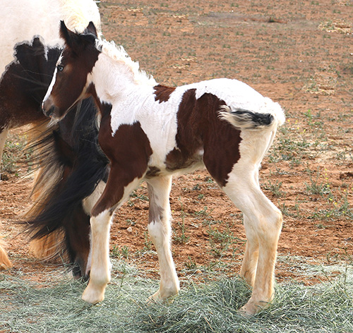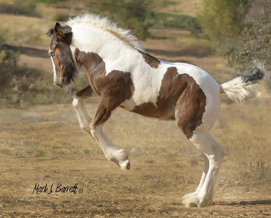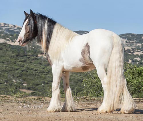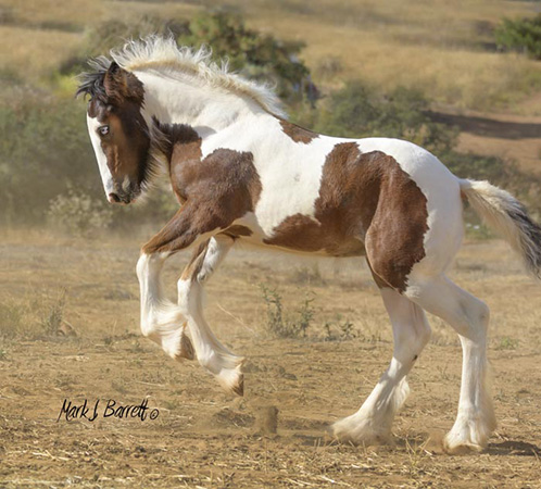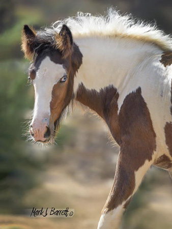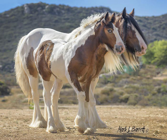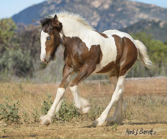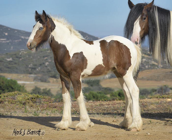 Our vet, trainer, visitors, have all commented on Athena's (Tina's) impressive substance. Tina is feminine and sweet with striking color and exquisite Gypsy Vanner conformation. Her blue/green eyes grab your attention. She is tall, atheletic and affectionate with a touch of 'Warrior Princess', a superior example of a high performance Gypsy Vanner. She has a long hip and wide chest to go with her graceful legs and lovely neck, and feather already coming in over her hooves. And she has a delightfully round apple butt! (Which she loves for you to scratch.) We estimate she'll make 15 h (or better). Sire Stillwater Farm's VV Deja Blue (the last picture) brings with him the lines of Bommarito, Gypsy King and Cushti Bok. This is an exceptional filly, great for show, fun and starting/carrying on great traditions! This girl will be a prize mare, the cornerstone of a fine herd.