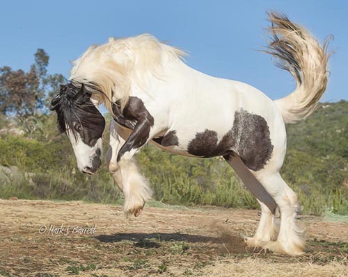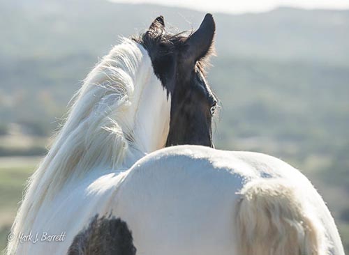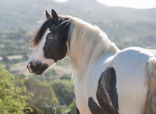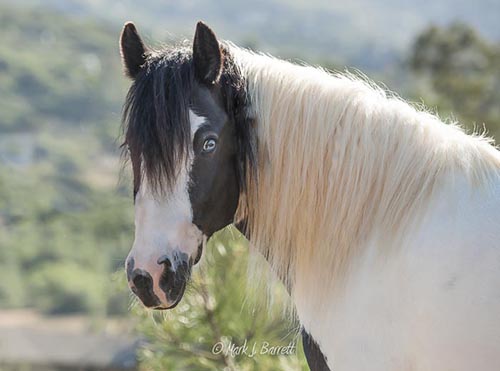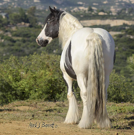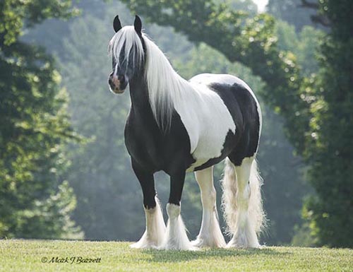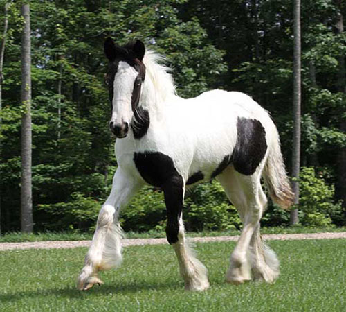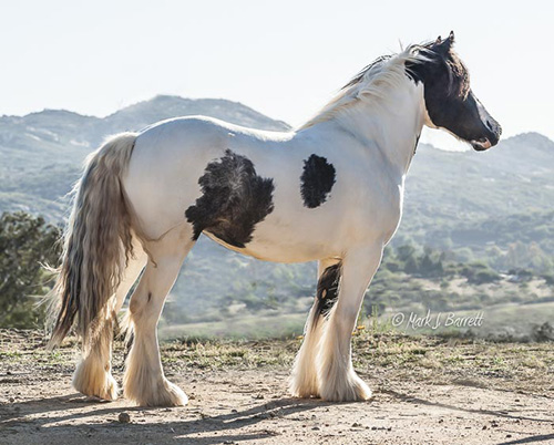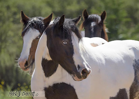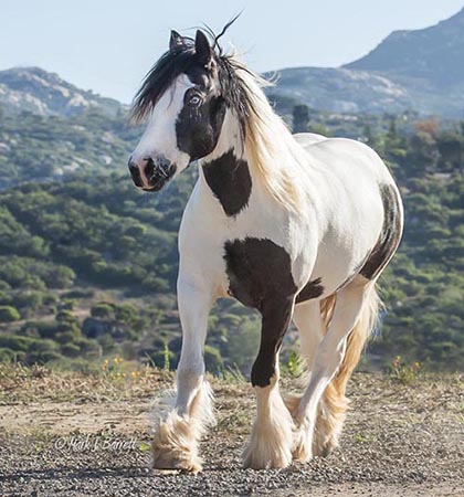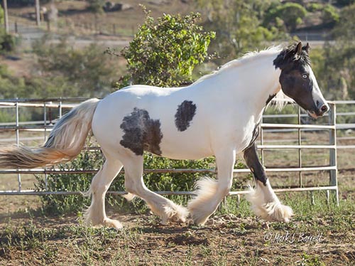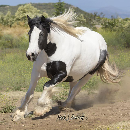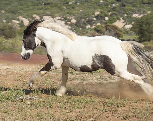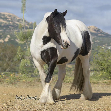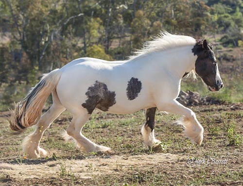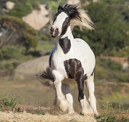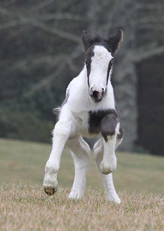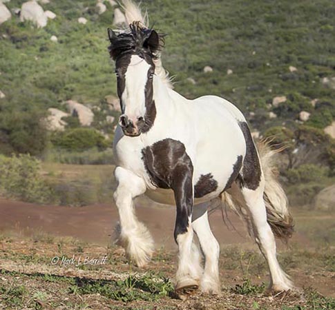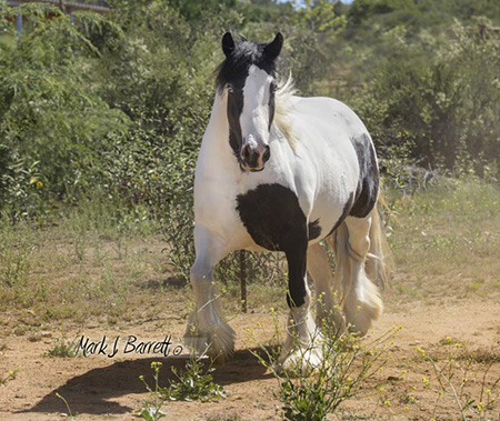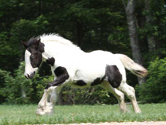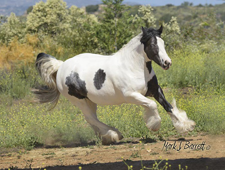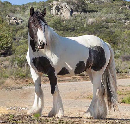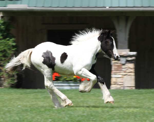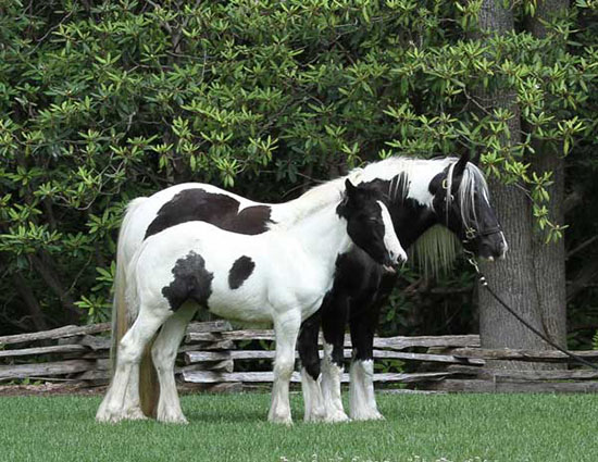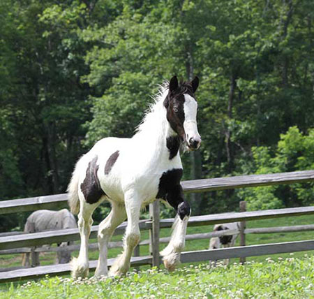 Year Foaled: 2012 Gypsy Vanner Horse Society (GVHS) # GV02493 SWF Annie’s Sweet Blueberry Pie (BB) is our little Mercedes. She came with her very own ‘goody bag’ when she arrived with various brushes, sprays and accoutrements, very befitting a luxury addition. BB comes from Robin Viscelgia’s Stillwater Farms in North Carolina (http://www.stillwaterfarm.com/). Robin is a good friend, and mentor for me in this new ranch biz. I’d say Robin has attained her vision of breeding the finest breed representatives: Just have a look at BB now. Deja Blue is BB’s daddy, and BB has DJ’s blue eyes. I am using DJ for Sparkle and Patience foals this coming year, and Misty (see the sales page) is by DJ: He does put out some lovely foals. BB’s momma, Annie Rose, is a beauty. Both BB’s parents have been pictured in Mark Barrett’s Gypsy Calendars. Have a look (last 2 pictures below in the gallery): It’s easy to see why. BB is and has always been cute! Now, she is absolutely gorgeous! Like Straw, we will wait until she’s at least 3 ½ and maybe four to start riding, but she already is very familiar with the saddle, bridle, ground driving, ground work. She ‘usually’ does whatever you ask, and when not, it only takes the slightest “now, BB…” to get her going again. Only problem we have is trouble telling her “no” because she is so cute. She is a perfect representative of the breed. She won’t be tall, but is a little tank, with tons of mane, tail and feather. She was very interested in the babies this year. Very worried when Sparkle gave birth, and happy to have us come out to be sure all was ok. Now, you can tell, she’d like one of those babies for herself. BB hangs around with the new babies a lot, and is making a very good auntie. BB is in love with Straw, always has been, and when they do get to play together, she can hold her own quite well. They are too old to just ‘live’ together without risking an early foal, so they get ‘supervised’ visits, which makes them very happy. |