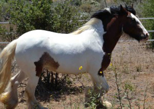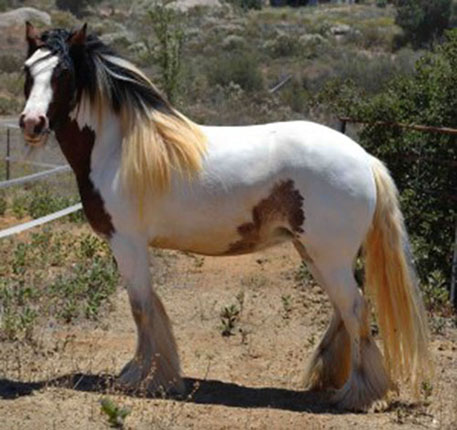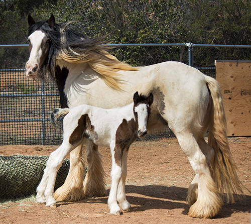 Year Foaled: 2009 Gypsy Vanner Horse Society (GVHS) # GV02059F1 MGRVV Patience is well suited to her name. She and Sparky came out from Valorie's Vanners in Texas at the same time when they were both halfway into their second year. The half-sisters dearly love each other. They are our ‘bookends’. I hope to teach them to work in tandem pulling a wagon when I get a bit more time (I’m working full time.) Patience is a very classic looking gypsy, broad and beautiful, with a full mane and plenty of feather. She is a gentle girl, always eyeing her human companions to see what they need. Patience is the horse I take out first for visitors to ride, and even before she was saddle trained, to lead and play with. Some of my favorite pictures are of Patience with my friend’s now six-year old nephew, Elijah, who has fallen in love with Patience. Patience rode last year in our little Alpine Christmas parade (her first) along with Mia, and loved it! Another favorite Patience picture was taken by my trainer, Alex, when she was ‘desensitizing’ Patience to various articles (Little Blue Riding Hood in the gallery). Patience Sire is Bandon and her Dam is Willow both beautiful horses from Valories Vanner’s in Texas : See the last pictures in the gallery below. Patience first foal is on our Sales Page, Katie (https://sonnetgypsyranch.com/katie.html) and we couldn’t be more pleased with this cross to Gypsy Gold’s King William, son of the Gypsy King. Patience is in foal for spring 2015 to Stillwater Farms Deja Blue. Patience’ classic confirmation has played very well with King William and did produce the anticipated beautiful sweet huge hairy tank that is Katie. We are pretty sure she’ll do something special with lovely Deja Blue, too. You can checkout a favorite Patience video here which pretty much says it all for Patience, and the very special talents of our wonderful young trainer, Alex…..https://www.youtube.com/embed/ZiF787kK5G0 |