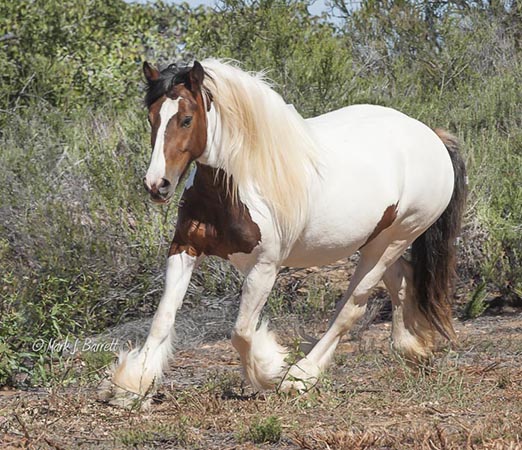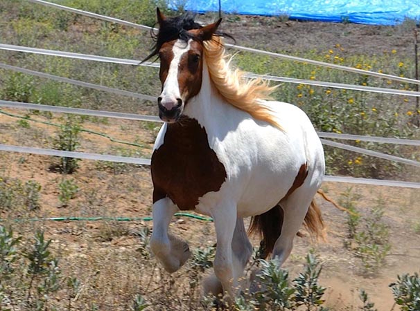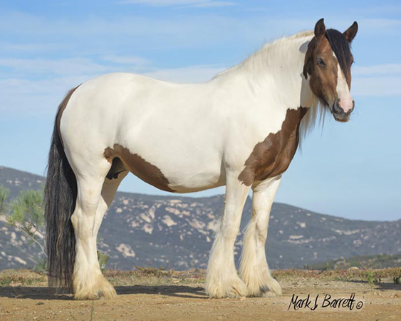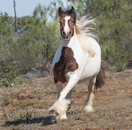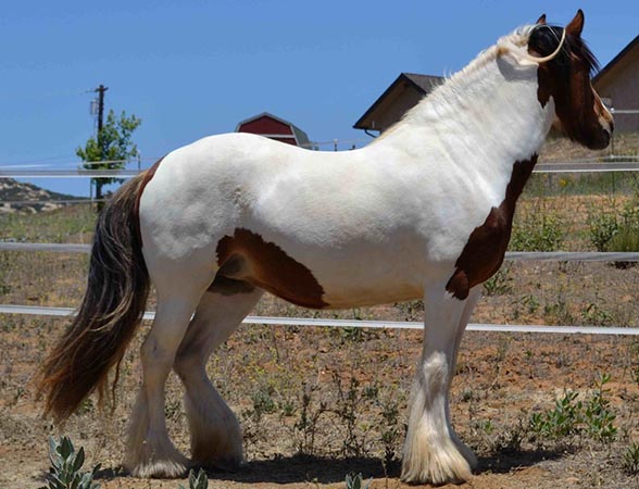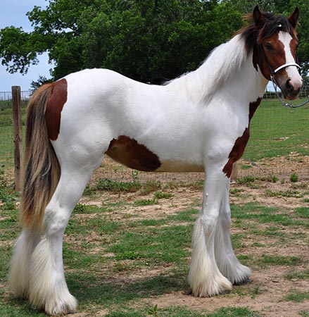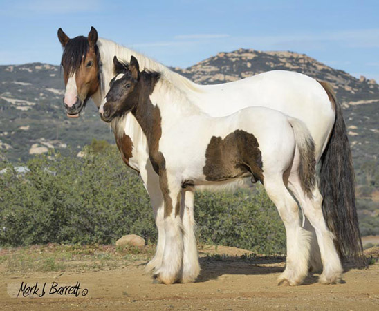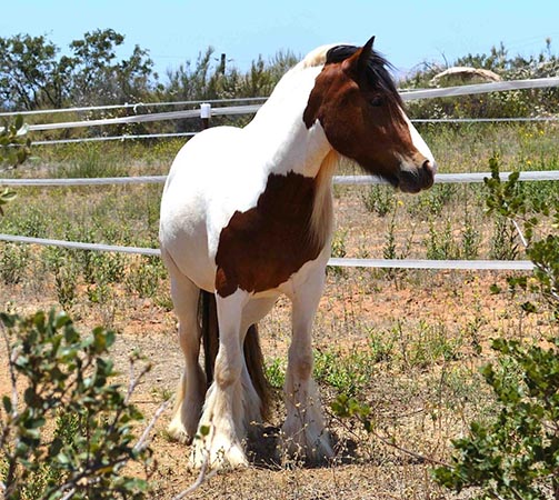 Year Foaled: 2009 Sparkle (Sparky/Sparks) is well suited to her name. She and Patience came from Valorie’s Vanners in Texas. You can see her Sire, Bandon and Dam, Brandy as the last pictures in the gallery below. Brandy was pregnant with Sparks in that picture, making it very special. Sparkle has recently relinquished “boss mare” to Mia, but she still takes all her second in command responsibilities quite seriously when she thinks its necessary, closely watching the younger horses. She also let’s Straw wrestle with her, which he loves, as he must be careful with little BB, but he can let it all out with big beautiful Sparky. She is a ‘supermom’, speaking to her first new born even before baby was completely out of the shoot. She often is watching all three babies, and the other Mom’s seem to enjoy the break. Sparky is very loving, and feels obliged to groom you when you are grooming her. She seems to love laughter and the giggle she gets by applying her big slurpy tongue to any bare parts of your back that emerge while you are brushing her feather. She makes you feel so loved. Sparkle is extremely attentive when she is doing a job, listening to every signal you give, and trying her best to react immediately. Turns out Sparky, well suited to her name, has a pension for ‘cutting/reining’ which our fantastic trainer, Alex, discovered. Alex has learned that Sparks loves to gallop and really set her butt to do a sliding stop. Sparks also really seemed to enjoy visiting the cattle near by, and got a big kick out of the fact that they moved back when she approached and looked at them. Now, there’s a sight to imagine…a cutting Vanner…. I also suspect Sparky will do well in low-level eventing a few years down the road, after she has some more time to mature and for her knees to completely set. Hopefully, I’ll hold up well enough to help her pursue that. While Sparky has the build of an athlete, mine is a little suspect. Sparky’s spring 2014 foal by Gypsy Gold’s Caymus, is in our Sales Page: Leena (https://sonnetgypsyranch.com/leena.html) is a beauty with Momma’s face and eyes, unusual color and great conformation. Sparky is in foal for Spring 2015 to another wonderful Stallion, Stillwater Farm’s Deja Blue. We are looking forward to this match too. |
